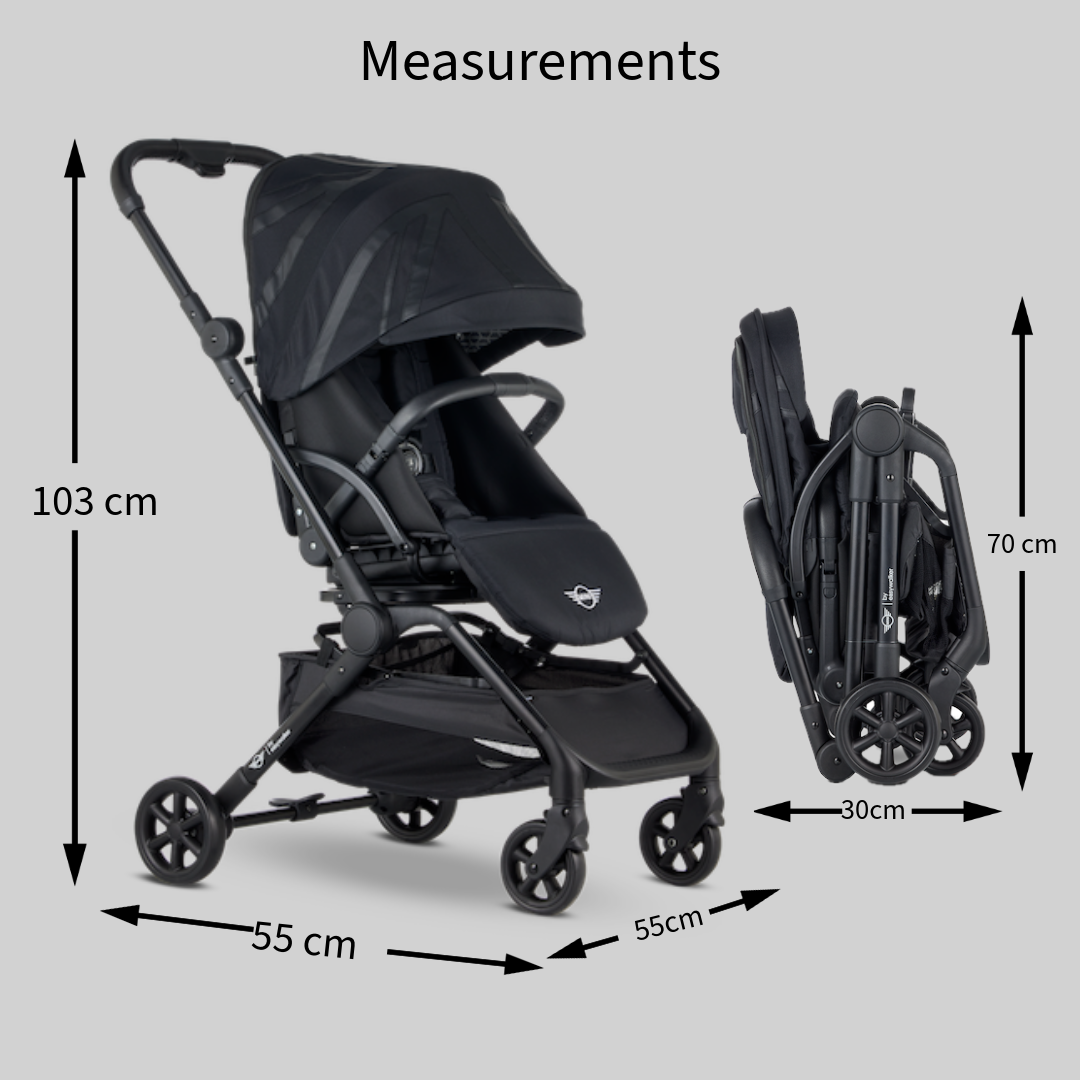 The Compact, Full Function Stroller including Bumper Bar, Rain Cover and Travel Bag.